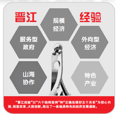 一個(gè)小小縣級(jí)市,怎樣孕育出如此巨變?從1996年到2002年期間,時(shí)任福建省委副書記、省長(zhǎng)的習(xí)近平七下晉江,下企業(yè)、進(jìn)社區(qū)、訪農(nóng)村、走基層,在實(shí)地調(diào)研中總結(jié)提出了“晉江經(jīng)驗(yàn)”——以“六個(gè)始終堅(jiān)持”和“正確處理好五個(gè)關(guān)系”為核心內(nèi)涵,堅(jiān)持以市場(chǎng)為導(dǎo)向,深入把握市場(chǎng)經(jīng)濟(jì)的運(yùn)行規(guī)律,大力加強(qiáng)市場(chǎng)體系和機(jī)制建設(shè),不斷提高拓展國(guó)內(nèi)外市場(chǎng)的能力,才能在新世紀(jì)中推動(dòng)國(guó)民經(jīng)濟(jì)實(shí)現(xiàn)跨越式發(fā)展。