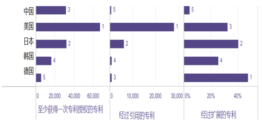 圖7:按照特定指標(biāo)統(tǒng)計(jì)的全球AI專利申請(qǐng)量前5名的國(guó)家