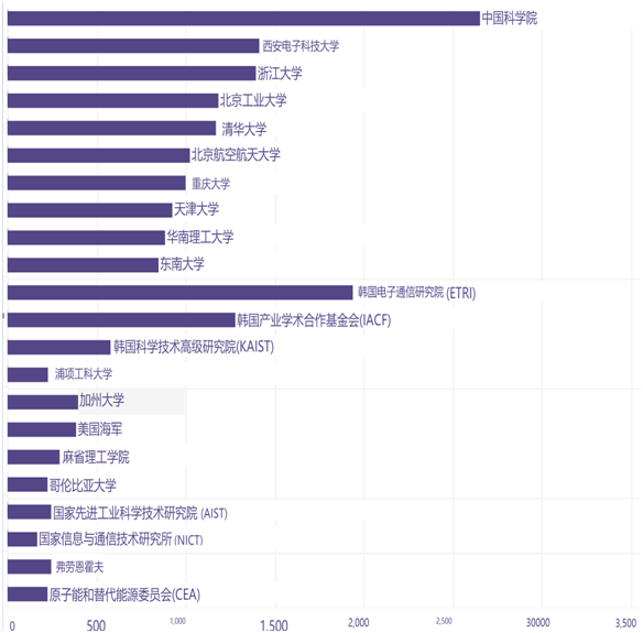 圖5:全球AI專利申請(qǐng)量排名前列的大學(xué)和科研機(jī)構(gòu)