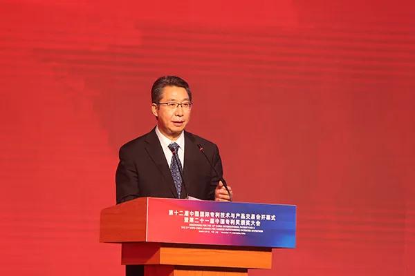 11月11日,以“知識產(chǎn)權(quán)引領(lǐng)經(jīng)濟高質(zhì)量發(fā)展”為主題的第十二屆中國國際專利技術(shù)與產(chǎn)品交易會在大連開幕,第二十一屆中國專利獎在開幕式上頒發(fā),這是中國專利獎頒獎大會首次在專交會上舉行。國家知識產(chǎn)權(quán)局局長申長雨,遼寧省委副書記、省長劉寧,遼寧省委常委、大連市委書記譚作鈞等出席開幕式并為獲獎代表頒獎。世界知識產(chǎn)權(quán)組織(WIPO)總干事鄧鴻森通過視頻向大會致辭,WIPO中國辦事處主任劉華出席。開幕式由大連市市長陳紹旺主持。