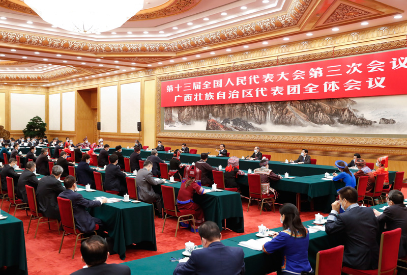 新華社北京5月23日電 中共中央政治局常委、國務院總理李克強23日上午來到他所在的十三屆全國人大三次會議廣西代表團,參加審議政府工作報告。鹿心社、陳武、彭石華等代表圍繞著力實現“六穩”“六保”、推進西部陸海新通道建設、決戰脫貧攻堅等問題踴躍發言。李克強與大家互動交流,深入討論。他說,在以習近平同志為核心的黨中央堅強領導下,廣西與全國一樣,面對錯綜復雜的國內外環境和突如其來的新冠肺炎疫情,各族人民攻堅克難,奮發進取,疫情防控有力有效,經濟社會發展和民生改善又取得新成績。