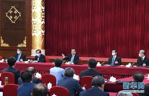 5月23日,中共中央政治局常委、國務院總理李克強看望出席全國政協十三屆三次會議的科協、科技界委員并參加討論。新華社記者 饒愛民 攝