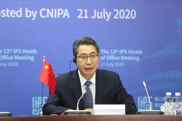 7月21日,第十三次中美歐日韓知識(shí)產(chǎn)權(quán)五局合作局長會(huì)議召開,這是五局合作歷史上首次以視頻會(huì)議形式舉辦的局長會(huì)議。會(huì)議由中國國家知識(shí)產(chǎn)權(quán)局(CNIPA)局長申長雨主持,歐洲專利局(EPO)局長安東尼奧·坎普諾斯、日本特許廳(JPO)長官糟谷敏秀、韓國特許廳(KIPO)廳長樸原住、美國專利商標(biāo)局(USPTO)局長安德烈·揚(yáng)庫出席會(huì)議。