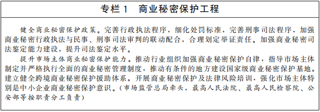 健全知識(shí)產(chǎn)權(quán)法律法規(guī)。開(kāi)展知識(shí)產(chǎn)權(quán)基礎(chǔ)性法律研究。統(tǒng)籌推進(jìn)專利法、商標(biāo)法、著作權(quán)法、反壟斷法、科學(xué)技術(shù)進(jìn)步法、電子商務(wù)法等相關(guān)法律法規(guī)的修改完善。加強(qiáng)地理標(biāo)志、商業(yè)秘密等領(lǐng)域立法,出臺(tái)商業(yè)秘密保護(hù)規(guī)定。完善集成電路布圖設(shè)計(jì)法規(guī)。推進(jìn)修訂植物新品種保護(hù)條例。制定中醫(yī)藥傳統(tǒng)知識(shí)保護(hù)條例。完善與國(guó)防建設(shè)相銜接的知識(shí)產(chǎn)權(quán)法律制度。全面建立并實(shí)施知識(shí)產(chǎn)權(quán)侵權(quán)懲罰性賠償制度,加大損害賠償力度。研究建立健全符合知識(shí)產(chǎn)權(quán)審判規(guī)律的特別程序法律制度。適應(yīng)科技進(jìn)步和經(jīng)濟(jì)社會(huì)發(fā)展需要,依法及時(shí)推動(dòng)知識(shí)產(chǎn)權(quán)法律法規(guī)立改廢釋。(中央宣傳部、最高人民法院、最高人民檢察院、科技部、工業(yè)和信息化部、司法部、農(nóng)業(yè)農(nóng)村部、商務(wù)部、國(guó)家衛(wèi)生健康委、市場(chǎng)監(jiān)管總局、國(guó)家國(guó)防科工局、國(guó)家林草局、國(guó)家中醫(yī)藥局、國(guó)家知識(shí)產(chǎn)權(quán)局、中央軍委裝備發(fā)展部等按職責(zé)分工負(fù)責(zé))
