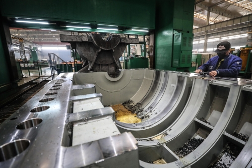 沈陽鼓風機集團股份有限公司的工人在車間進行生產工作(2020年2月10日攝)。新華社記者 潘昱龍 攝