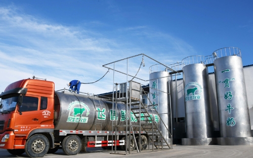 在黑龍江飛鶴乳業股份有限公司專屬的甘南縣瑞信達原生態牧場,工作人員在檢查一輛剛裝完鮮奶的全封閉低溫安全運輸車(2018年10月30日攝)。新華社記者 王建威 攝