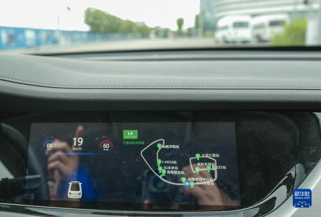 一輛L4級自動駕駛汽車在自動駕駛模式下,沿著重慶仙桃國際大數據谷示范運營線路的開放城市道路進行自動駕駛模式行駛測試(2019年7月24日攝)。新華社記者 劉潺 攝