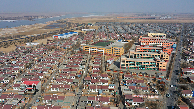 寧夏銀川市興慶區(qū)月牙湖鄉(xiāng)濱河家園移民村(無人機照片,2021年2月11日攝)。新華社記者 王鵬 攝