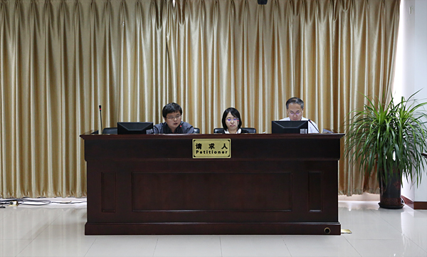 合議組成員就座。參審員宣讀口頭審理審議庭規則。合議組組長宣布口頭審理開始,介紹案件基本信息,合議組成員及書記員。