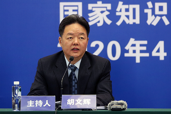 [國(guó)家知識(shí)產(chǎn)權(quán)局新聞發(fā)言人、辦公室主任 胡文輝] 各位新聞媒體的朋友,大家上午好!歡迎參加國(guó)家知識(shí)產(chǎn)權(quán)局2020年第二季度例行新聞發(fā)布會(huì)。這周,也就是4月20日至4月26日,是全國(guó)知識(shí)產(chǎn)權(quán)宣傳周。周一,我們?cè)诰€上隆重舉辦了2020年全國(guó)知識(shí)產(chǎn)權(quán)宣傳周活動(dòng)啟動(dòng)儀式,各位記者朋友都給予了高度關(guān)注和全面報(bào)道,取得了很好的宣傳效果。在這里,我謹(jǐn)代表國(guó)家知識(shí)產(chǎn)權(quán)局對(duì)大家長(zhǎng)期以來對(duì)知識(shí)產(chǎn)權(quán)宣傳工作的關(guān)心、支持和辛勤付出表示衷心的感謝。