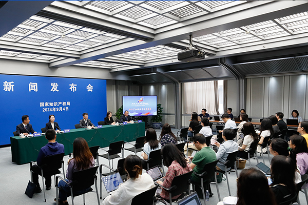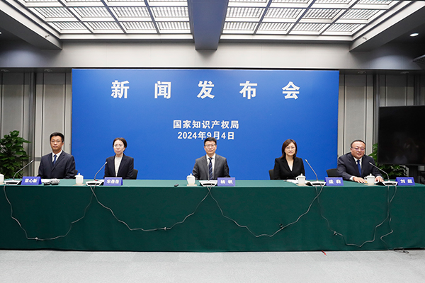 [國家知識產權局新聞發言人,辦公室副主任 梁心新] 各位媒體朋友,大家上午好。歡迎參加國家知識產權局9月例行新聞發布會。出席今天發布會的有國家知識產權局知識產權保護司副司長宋蓓蓓女士、公共服務司司長楊帆先生、國際合作司副司長(主持工作)盛莉女士、知識產權出版社董事長劉超先生。我是國家知識產權局新聞發言人,辦公室副主任梁心新。