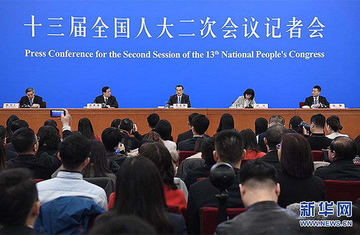 【上午】 國(guó)務(wù)院總理李克強(qiáng)在人民大會(huì)堂三樓金色大廳會(huì)見采訪十三屆全國(guó)人大二次會(huì)議的中外記者并回答記者提出的問題